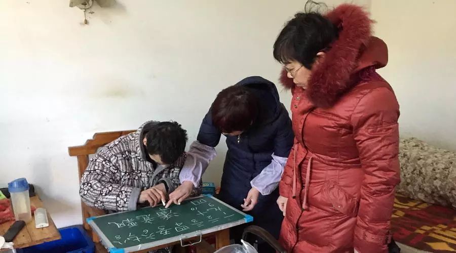 学校得知情况后,校长亲自带领教师到潘意飘家送教。刚开始看到我们的他非常紧张,但不难看出对于我们的到来他很高兴。通过短暂的接触,我们发现他的情况远比我们想象中的好得多,记忆力非常地好,很多字都认识,却不会写。凡是老师教过的,他都非常用心去学、去记。老师每教一个字,他都会说一声“谢谢!”看似简单的话语却温暖了每个人的心。